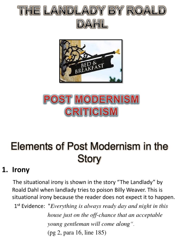 Nov 27, · The Landlady by Roald Dahl Argumentative Essay. The story of The Landlady by Roald Dahl begins with a male character called Billy Weaver. Billy Weaver is a young, aspiring lad. He is only seventeen and has come from London to Bath to find a new exciting life as a worker in the Head blogger.comted Reading Time: 4 mins Jun 18, · “The Landlady” by means of Roald Dahl in addition to “The Wide open Window” by means of Saki Composition Sample The initial area, the actual first 4 stanzas, would be the presenter explaining the blogger.comted Reading Time: 11 mins An Essay on The Landlady by Roald Dahl. Words3 Pages. The Landlady by Roald Dahl In the short story “The Landlady,” Roald Dahl’s use of foreshadowing prepared readers well for the end of the story. He used hints such as describing the outside of the bed and breakfast, giving details of the entry and the bedroom, and also telling the readers about the living room